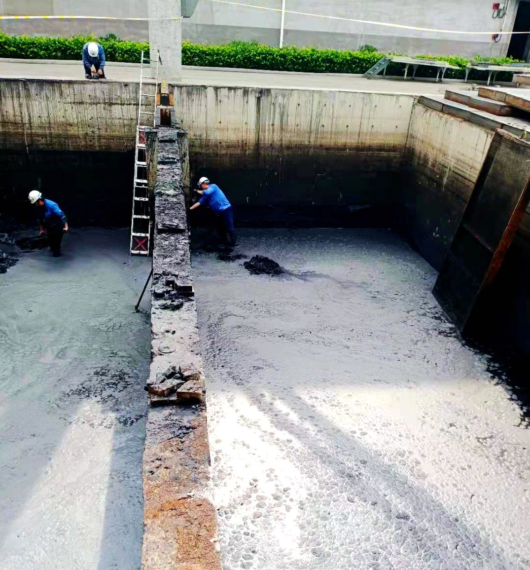 因循環(huán)水系統(tǒng)運行時間較長,造成循環(huán)水池內(nèi)積存大量淤泥,清淤時只能一桶一桶往外清運,生產(chǎn)一班合理分工,兩人一組,一人在池內(nèi)清理另一人在池外提運,配合默契,不分你我。