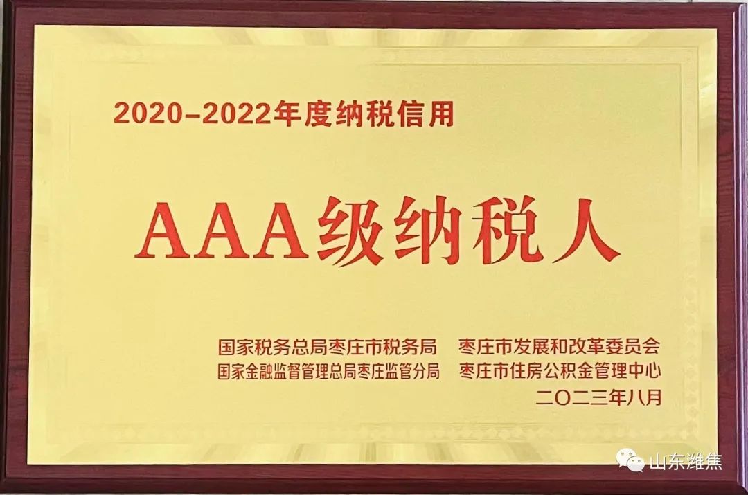 8月29日,國(guó)家稅務(wù)總局棗莊市稅務(wù)局、棗莊市發(fā)展和改革委員會(huì)、國(guó)家金融監(jiān)督管理總局棗莊監(jiān)管分局及棗莊市住房公積金管理中 心聯(lián)合表彰了2020-2022年度納稅信用AAA級(jí)企業(yè),薛城能源公司獲評(píng)2020-2022年度納稅信用“AAA級(jí)納稅人”。榮譽(yù)的獲得,充分體現(xiàn)了公司稅務(wù)工作的制度化、規(guī)范化,為企業(yè)增信、評(píng)優(yōu)、融資等工作奠定了良好基礎(chǔ)。